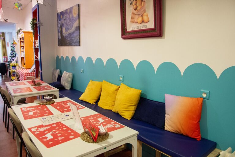 Le joli “cocon“, entièrement décoré par les deux gérantes, déploie 30 places assises sur de grandes tables – pour avoir l’espace de s’exprimer – et même bientôt un espace de coworking tout confort pour les travailleurs qui cherchent un peu de douceur. Car en plus de son côté créatif, le Cocoon Art est bien un café qui n’oublie pas sa carte.