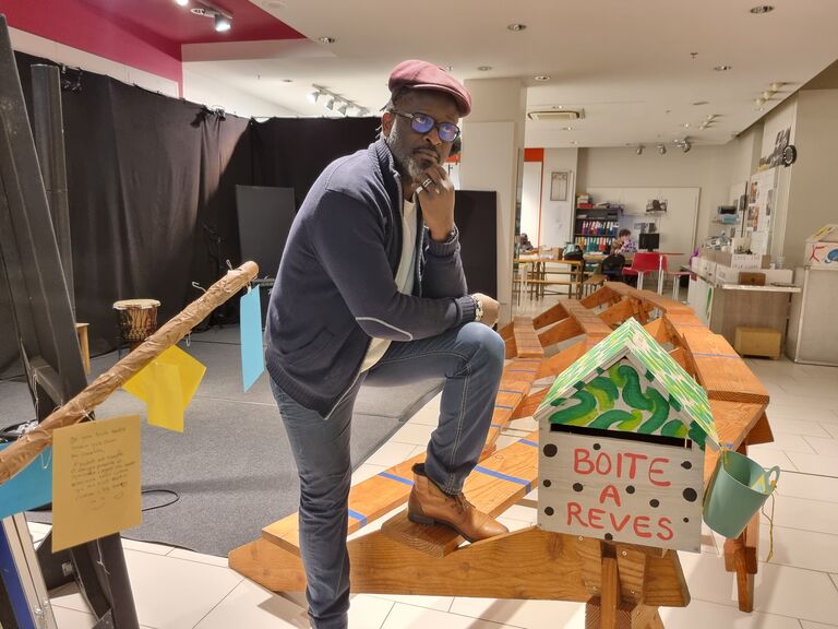« On peut parler de tous les sujets, déclarent Kevin-Emerich, administrateur et Ulrich (en photo), directeur artistique de la Youle compagnie. Les habitants expriment ce qu’ils rêvent pour le quartier, ce qu’ils veulent améliorer dans la vie de la cité. On a débuté par une déambulation dans le quartier pour installer les boîtes en décembre. On fera la restitution des rêves le samedi 22 février en déambulation musicale également, avec des enfants du quartier qui auront construit des oiseaux pour l’occasion. Les explications sur les boîtes sont traduites en sept langues afin que chacun puisse s’exprimer. »