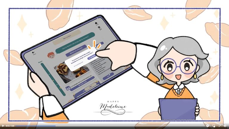 Les interactions se développent à partir du mur de la famille, qui avertit les proches à chaque ajout. L’application Happy Madeleine est portée par l’association en partenariat avec l’agence rouennaise AMA Digital, start-up créatrice d’une plateforme de services intergénérationnels. Le projet, à ses débuts accompagné par Normandie Incubation, a obtenu le prix Coups de Cœur La Poste #FemmesduNumérique en 2021.